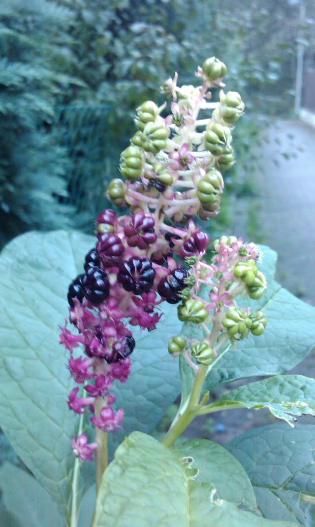 Ja, hinten im Gemüsebeet konnte ich die Kermesbeere vor ein paar Tagen durch die Ligusterhecke erahnen. Jetzt stellt sich nur die Frage, wann ich über den verwilderten Weg dorthin komme. Allerdings sollte ihr Blattwerk wohl noch etwas abtrocknen ...